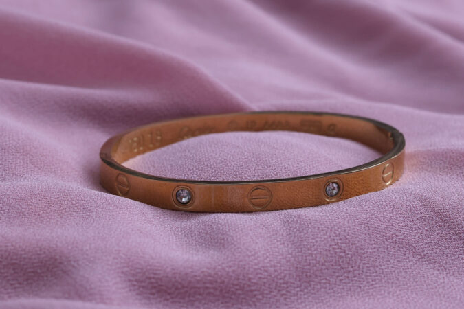 Woman Adjusting a Gold-Toned Charm Bracelet