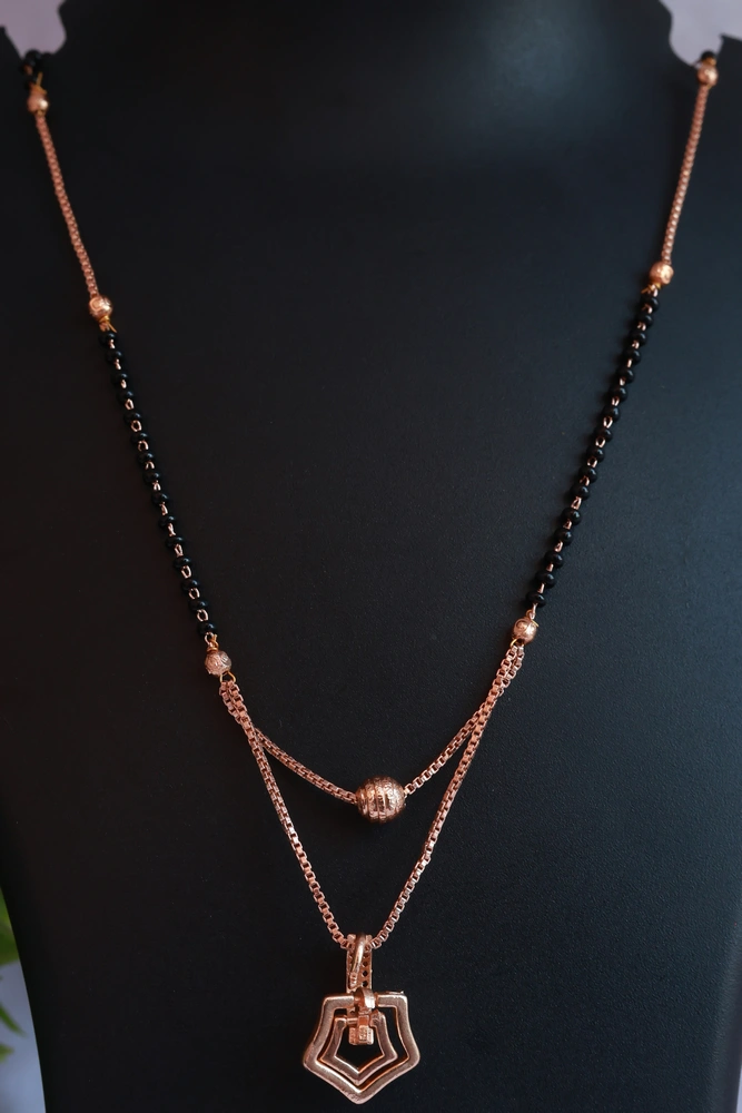 Dual-Chain Rose Gold Plated American Diamond Star-Shaped Pendant