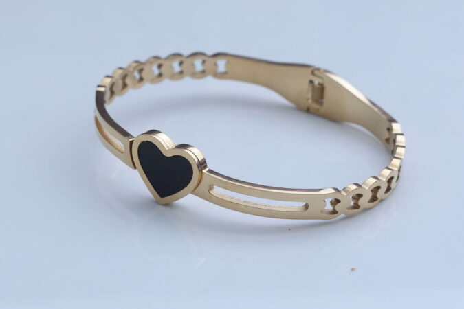Gold-Tone Dual Band Bracelet with Pave Black Heart