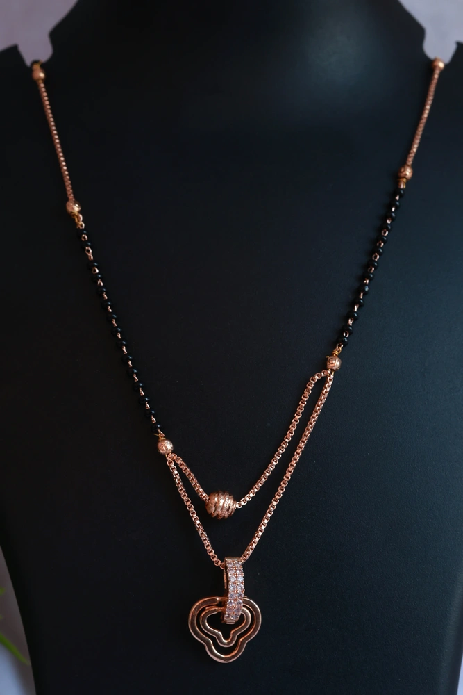 Dual-Chain Rose Gold Plated American Diamond Pendant Necklace