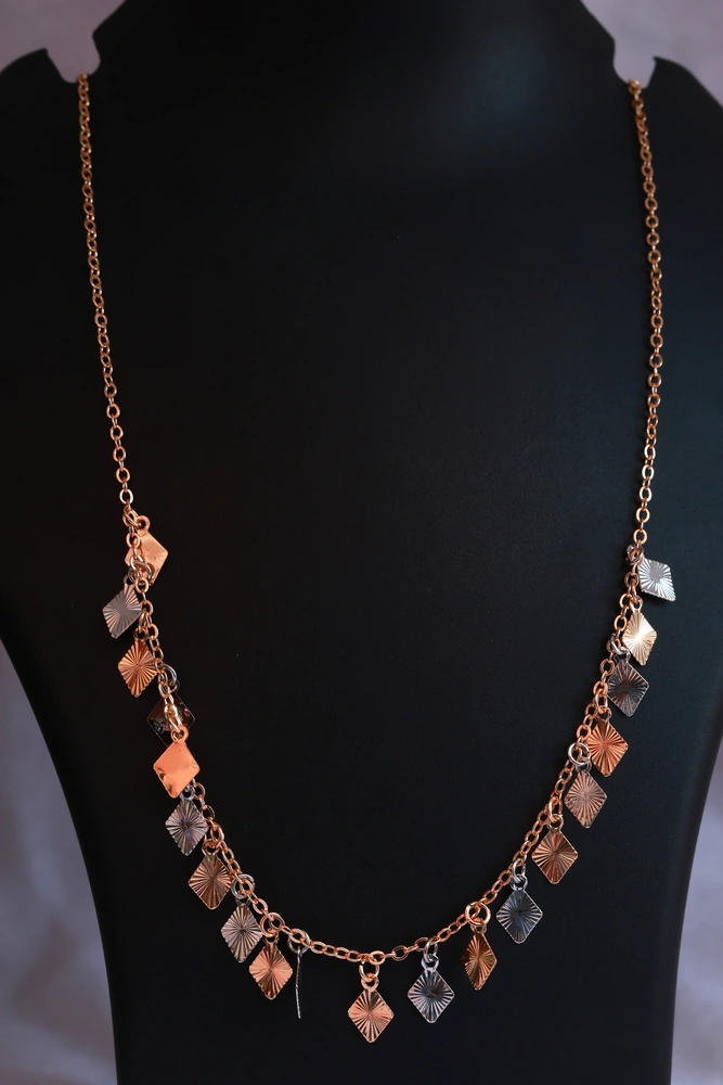 Mixed-Tone Dangle Charm Necklace with Square Motifs