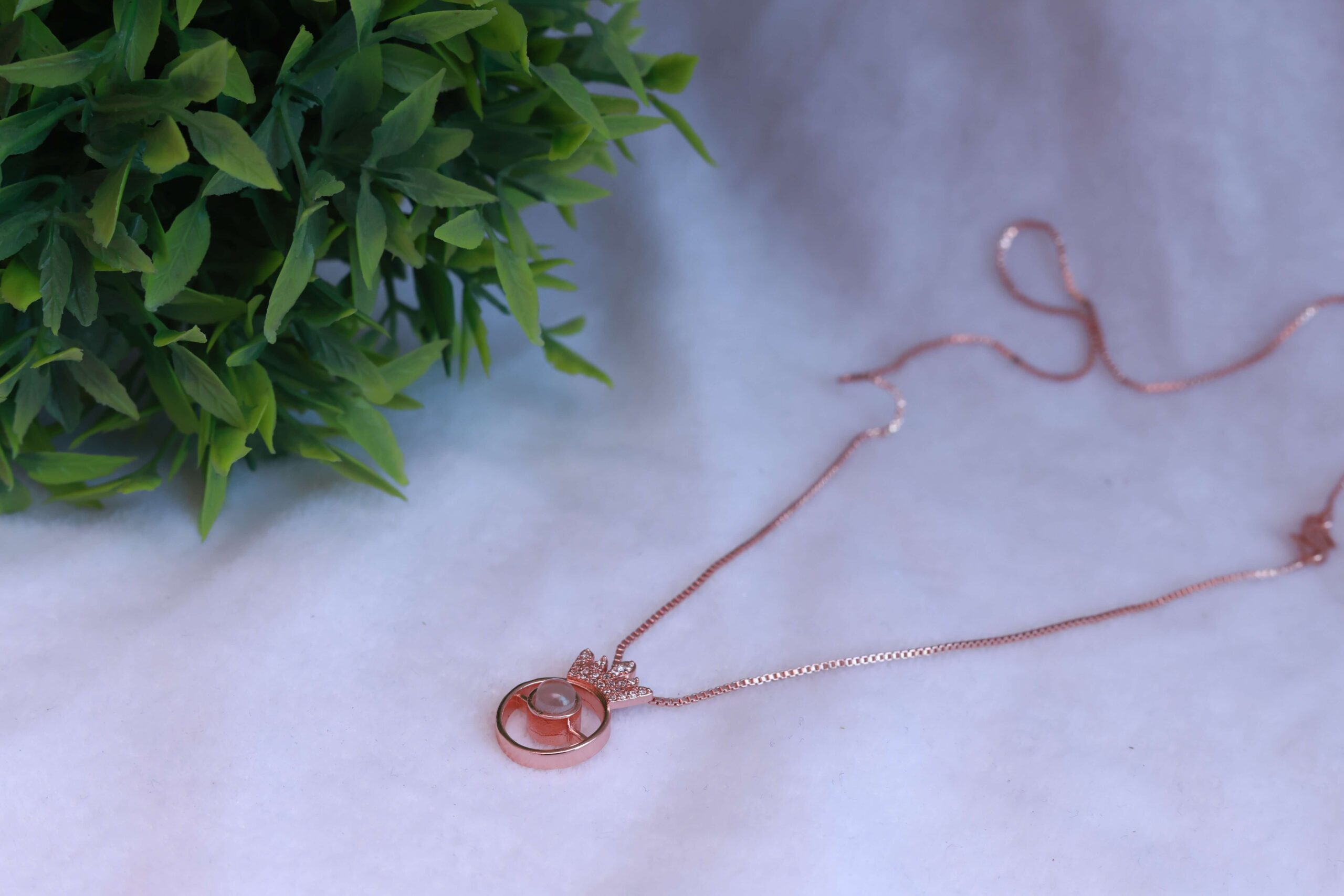 The upper element is a sparkling crown, adorned with small, clear pave-set stones, suggesting a regal and glamorous touch. Below the crown, a circular frame encloses a dark, possibly black or deep purple, central element
